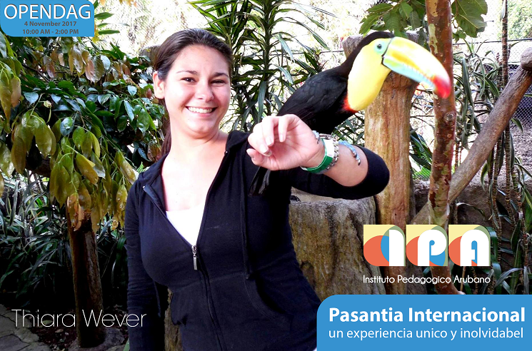 Un parti esencial di e programa di IPA ta e pasantia internacional (buitenlandse stage) cu e studiantenan mester cumpli cu ne den cuadro di e curiculo di e estudio. Meta principal di e pasantia ta pa e studiantenan conoce cultura y sistema di enseñansa diverso, desaroyo profesional y personal y pa trece innovacion specificamente riba tereno di Desaroyo Sostenibel den ensenañsa na Aruba. Thiara Wever, graduado di 2015, ta conta con el a experiencia su pasantia internacional na Costa Rica.