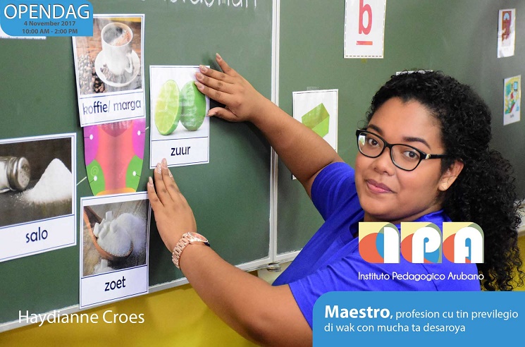 IPA ta invita particularmente henter e comunidad di Aruba pa asisti na su Dia Publico p’asina cera conoci cu nos instituto en general y e ambiente estudiantil en particular, conoce nos facilidadnan y tambe pa haya informacion di loke IPA ta haci. IPA ta invita tur studiante di HAVO, VWO, EPI y tur otro persona interesa pa cuminsa un estudio pa maestro pa asisti na e Dia Publico aki dia 4 di november 2017. IPA su Dia Publico lo ta di 10or di mainta te 2or di atardi. Durante e Dia Publico aki lo duna informacion general di e estudio di maestro pa Enseñansa Primario, Movecion y Salud, Bachelor Papiamento, Bachelor Hulandes, Bachelor Ingles, Bachelor Spaño y Master Educational Needs. Banda di esaki lo tin presentacion di proyecto di studiante y exposicion di e diferente areanan di formacion di e estudio di maestro pa haya un miho bista riba kico e estudio ta encera. Naturalmente lo tin oportunidad pa inscribi como studiante pa e estudio pa maestro di Enseñansa Primario, Movecion y Salud, Bachelor Papiamento Bachelor Hulandes y Master Educational Needs. Pa por inscribi na IPA mester trece e papel di registro civil (papel di AWG 5,-), si a gradua caba copia di diploma di sea HAVO, VWO of MBO nivel 4. E gastonan di inscripcion ta AWG 75,-. Banda di esaki tur persona cu ta interesa den Bachelor Ingles y Bachelor Spaño por pasa IPA pa ricibi informacion y yena un formulario di interes. Tambe lo tin un ‘Food & Bake Sale’ organisa pa nos propio studiantenan. E benta di cuminda aki tin como meta pa recauda fondo pa e studiantenan di aña 3 cu pronto lo biaha pa exterior pa nan pasantia internacional. Di e manera aki IPA ta brinda henter Aruba un dia special di orientacion, yen di informacion y actividad.